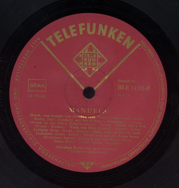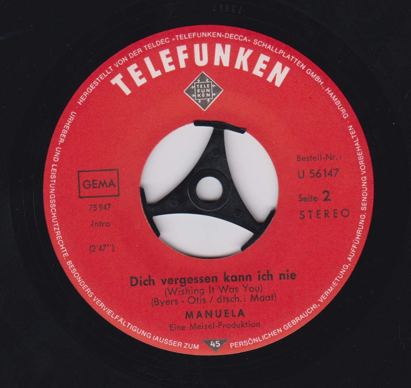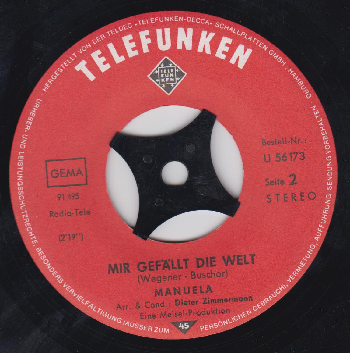 Manuela, STE-14311-P, weinrotgold-Label, 1964 erschienen, STEREO-Version.
