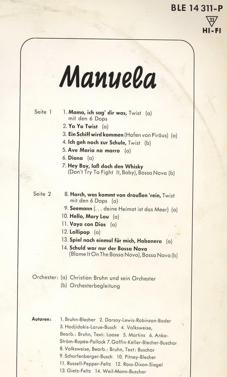 Dann darf natürlich auch Manuelas ALLERERSTE LP hier nicht fehlen.