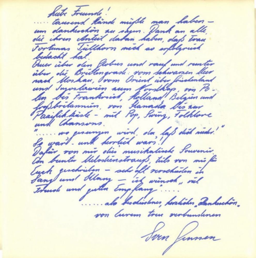 Hier seine erste Single als Swen Uwe Jenssen von 1959. Anhänge an diesem Beitrag Dateiname: Sven 3.jpg Dateigröße: 132.94 KB Titel: Heruntergeladen: 166 Dateiname: Sven 4.jpg Dateigröße: 131.52 KB Titel: Heruntergeladen: 163 Dateiname: Sven 5.jpg Dateigröße: 96.33 KB Titel: Heruntergeladen: 170 Dateiname: Sven 6.jpg Dateigröße: 97.75 KB Titel: Heruntergeladen: 164