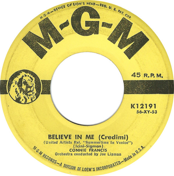 02 56....K12191....CONNIE FRANCIS Orchestra conducted by Joe Lipman With The Jaybirds..My First Real Love (56-XY-52)/CONNIE FRANCIS Orchestra conducted by Joe Lipman..Believe In Me (Credimi) (56-XY-53)