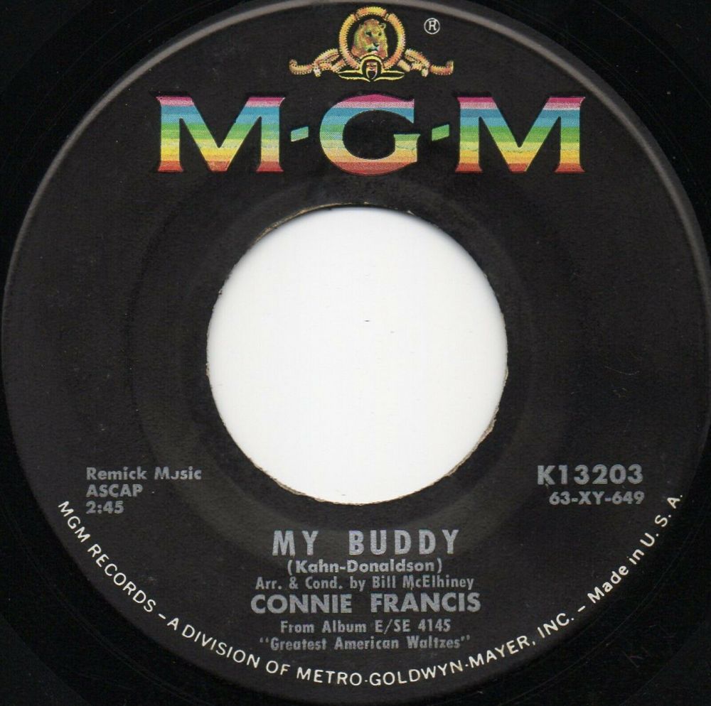 12 63....K 13203....Arr. & Cond by Claus Ogerman CONNIE FRANCIS..The Summer Of His Years (63-XY-864)/Arr. & Cond by Bill McElhiney CONNIE FRANCIS..My Buddy (63-XY-649)