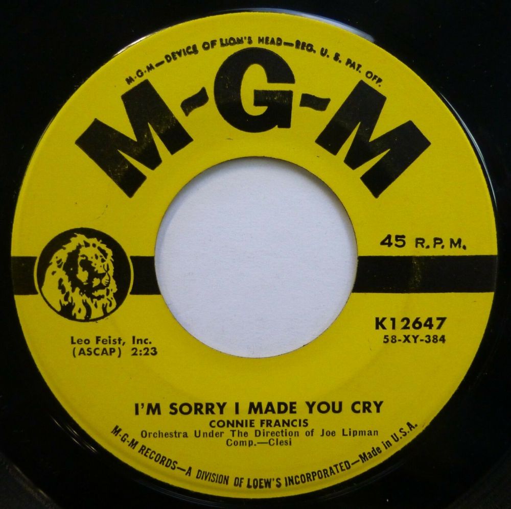 04 58....K12647....CONNIE FRANCIS Orchestra Under The Direction of John Lipman..I'm Sorry I Made You Cry (58-XY-384)/Lock Up Your Heart (58-XY-381)