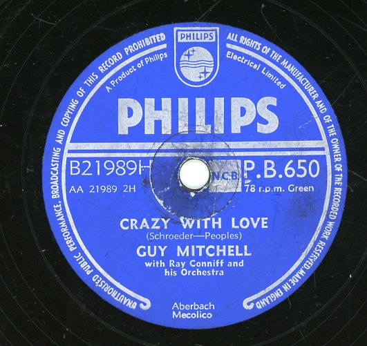10 56....4-40769....GUY MITCHELL with RAY CONNIFF & his ORCH. ..Singing The Blues (ZSP 39219)/Crazy With Love (ZSP 39220)