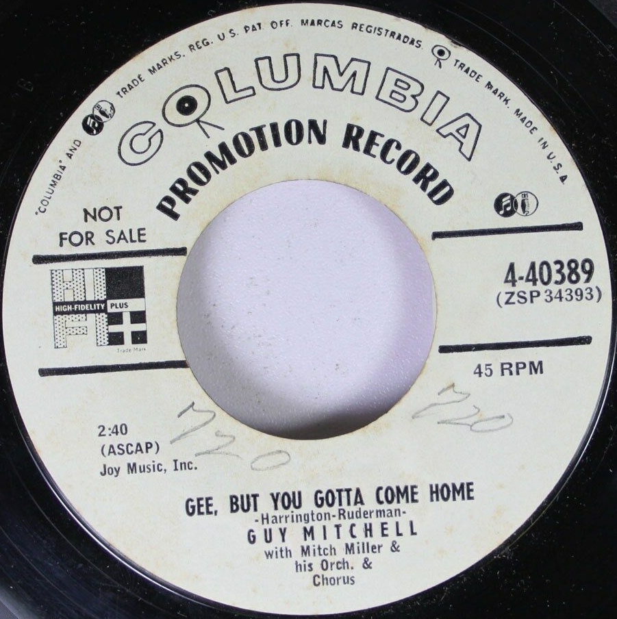 12 54....4-40389....GUY MITCHELL with Mitch Miller & his Orch. & Chorus..I Met The Cutest Little Eyeful (At The Eiffel Tower) (ZSP 34392)/Gee, But You Gotta Come Home (ZSP 34393)