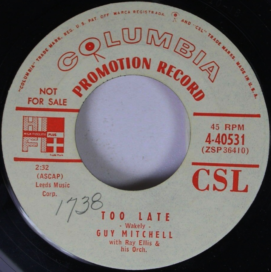 06 55....4-40531....GUY MITCHELL with Ray Ellis & his Orch. ..Too Late (ZSP 36410)/GUY MITCHELL with Orch. & Chorus under direction of Mitch Miller..Let Us Be Sweethearts Over Again (ZSP 36411)