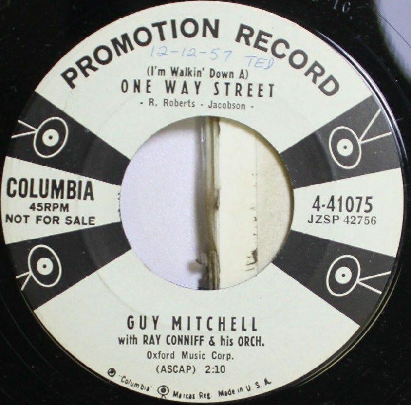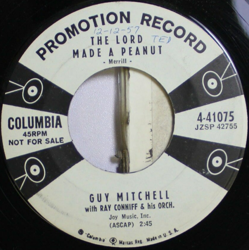 12 57....4-41075....GUY MITCHELL with RAY CONNIFF and his ORCH. ..The Lord Made A Peanut (ZSP 42755)/(Walkin' Down A) One Way Street (ZSP 42422)