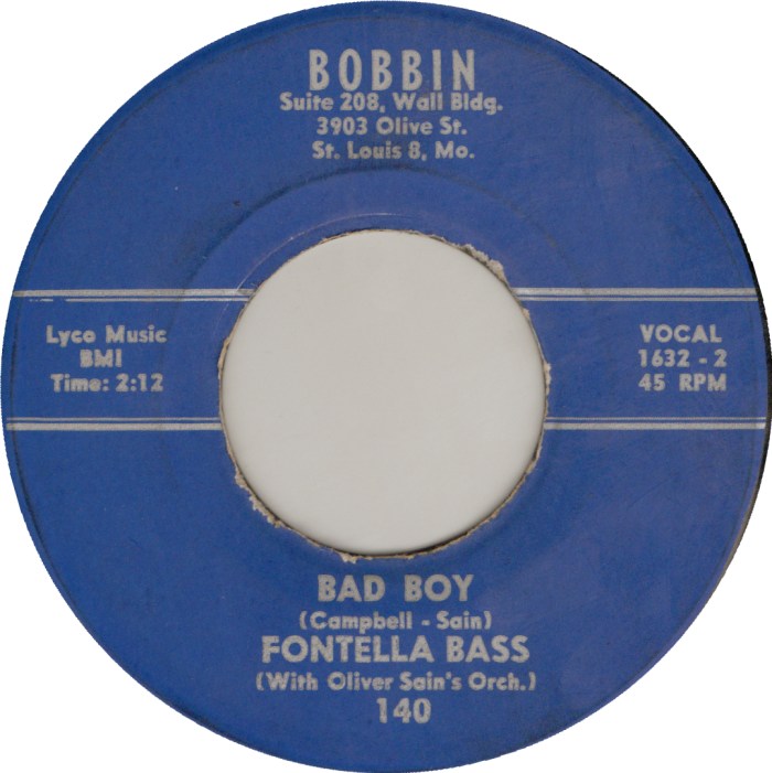 began singing R&B songs at local contests and fairs. In 1961, Bass found steady work on the local Leon Claxton Show, playing piano and singing in the chorus. She also began playing piano on blues vocalist Little Milton's records. With the support of Bob Lyons, the manager of St. Louis station KATZ, Bass recorded several songs released through Bobbin Records. She saw no notable success outside her home town.