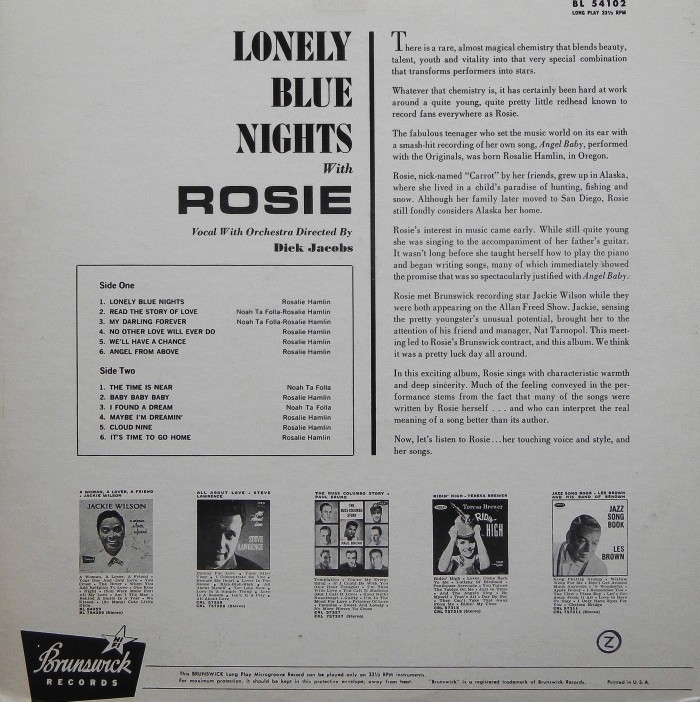 „The broadcast and performances went out live, and one oft the most telling ´things-to-come` moments happened when Chicano rock ´n´roll group Rosie & the Originals performed. Their hit “Angel Baby” reached its peak position of #5 on the Billboard Hot 100 chart in the second week of January 1961. When “Angel Baby” hit #1 locally on KFWB, the group appeared on P.O.P. Dance Party. Rosy with her first royalty check from the success of the record, went right out and bought a big, expensive fur coat for that occasion. She came out, looking amazing, and sang live …beaming out across the entire greater Los Angeles area, from Santa Barbara to San Clemente and all the way inland to San Bernadino/Riverside. With the cameras running and broadcasting live with no delay, Wink asked Rosie, after she had performed the song `That was great… so I hear you wrote that?` Rosie shyly replied, `Well, yes`. Wink then asked, “ ´How did you come up with something like that?` Rosie coyly responded, ´Well, you now … we were just fucking around, me and the guys at the house, and then …`