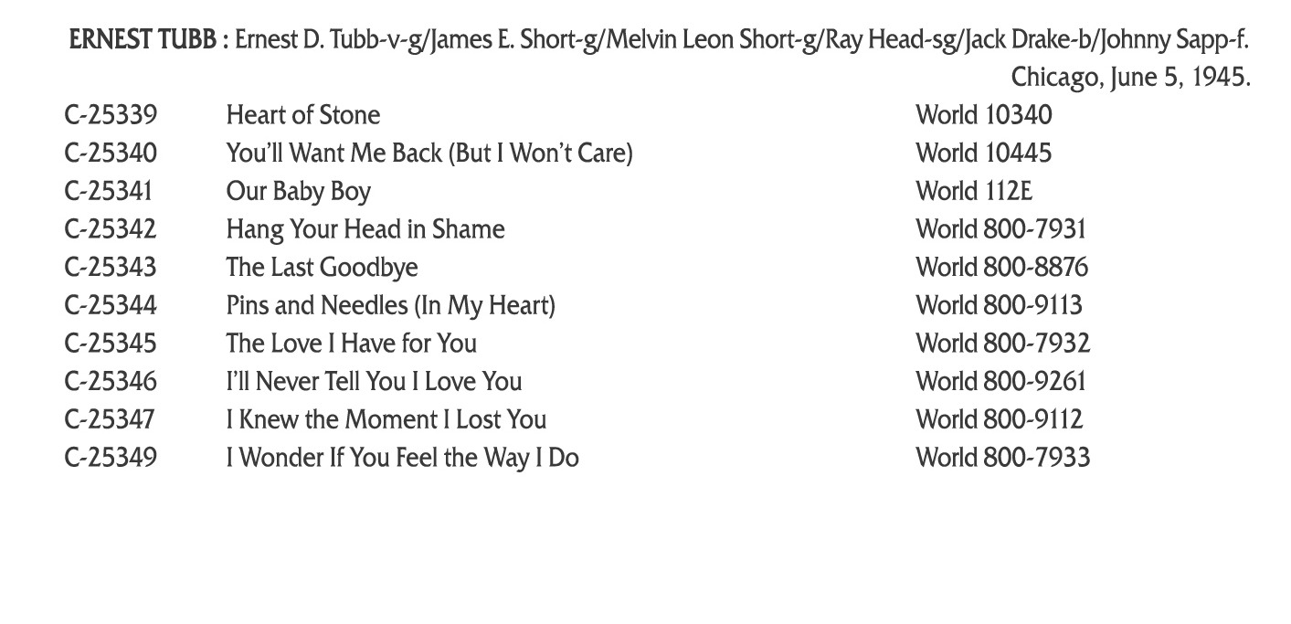 06 62....31399....ERNEST TUBB Vocal With Instrumental Accompaniment..Show Her Lots Of Gold (112,116)/ERNEST TUBB Vocal With Chorus And Instrumental Accompaniment..I'm Looking High And Low For My Baby (111,970)