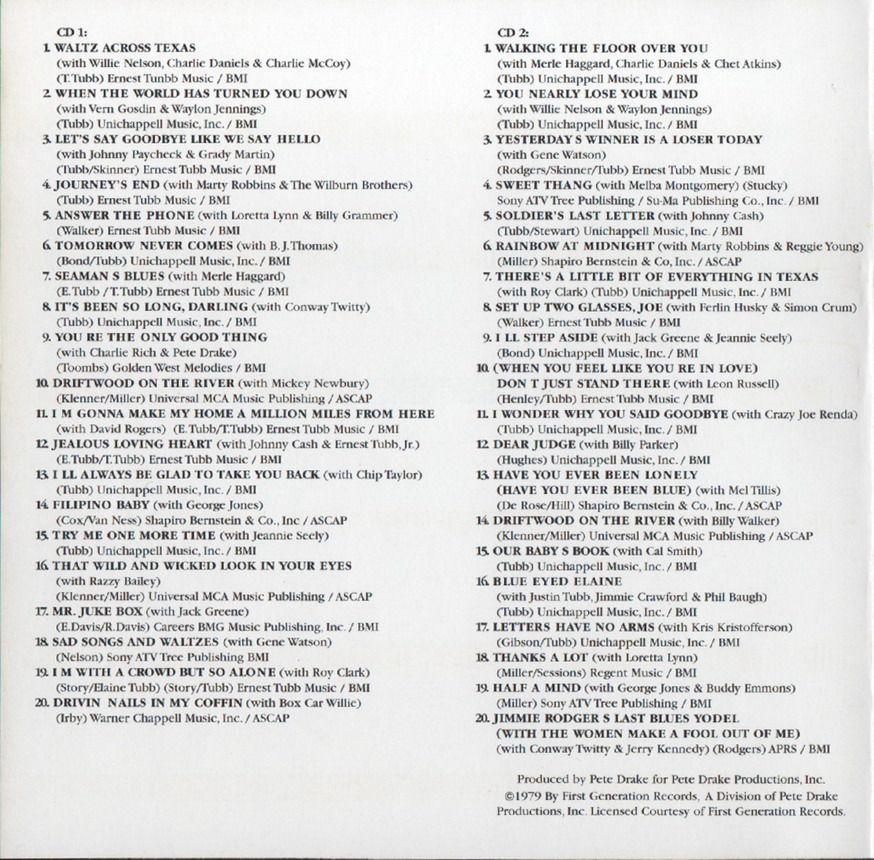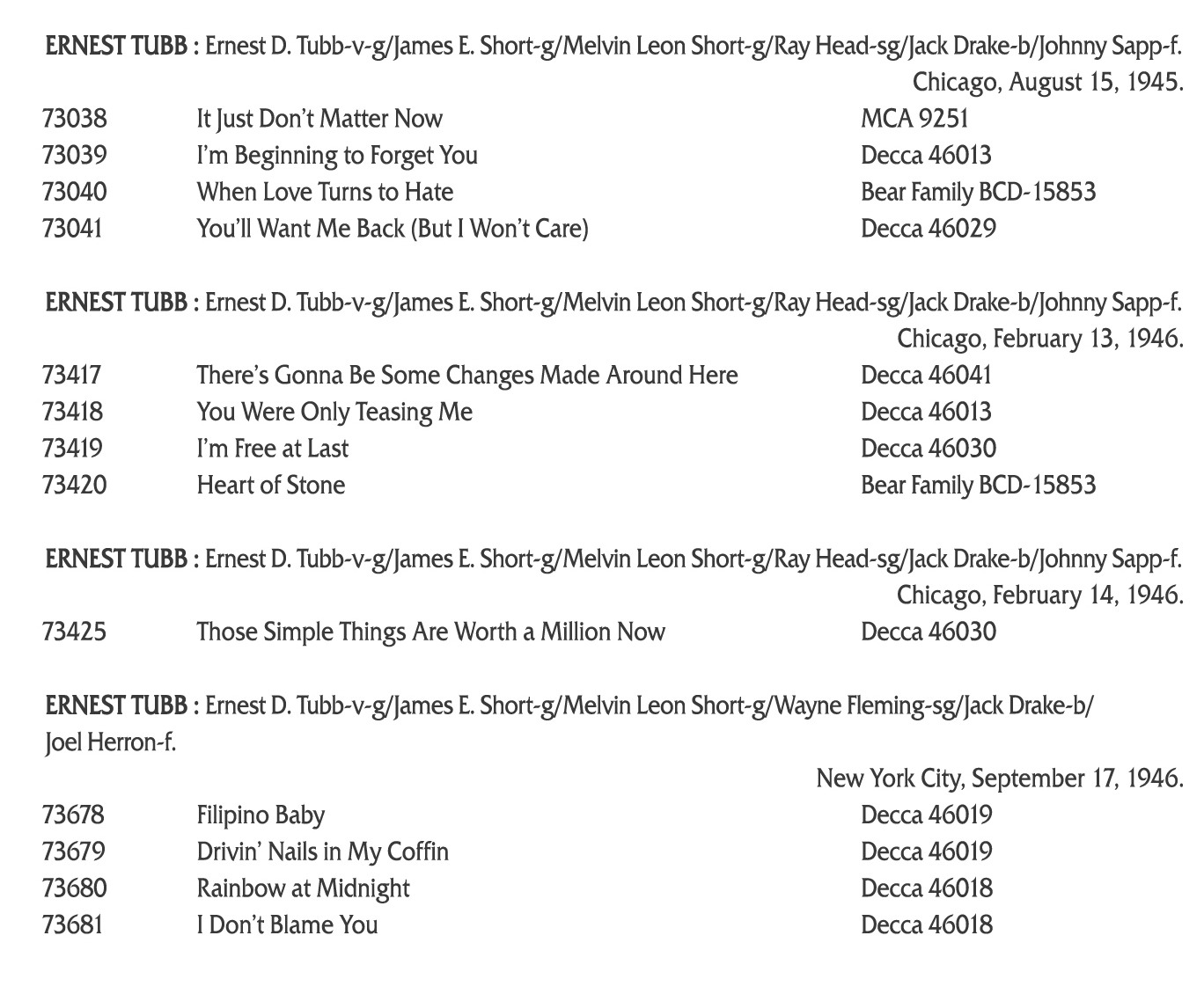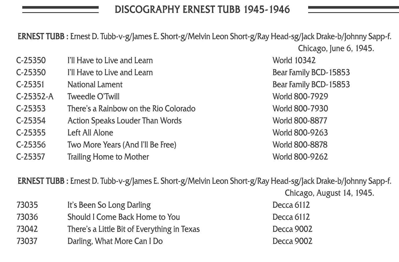 Die 45er-Singles von Ernest Tubb in der erweiterten Rocknroll-Ära (die Kasetten-Singles [Albums] gab es größtenteils auch als Solo-Single):