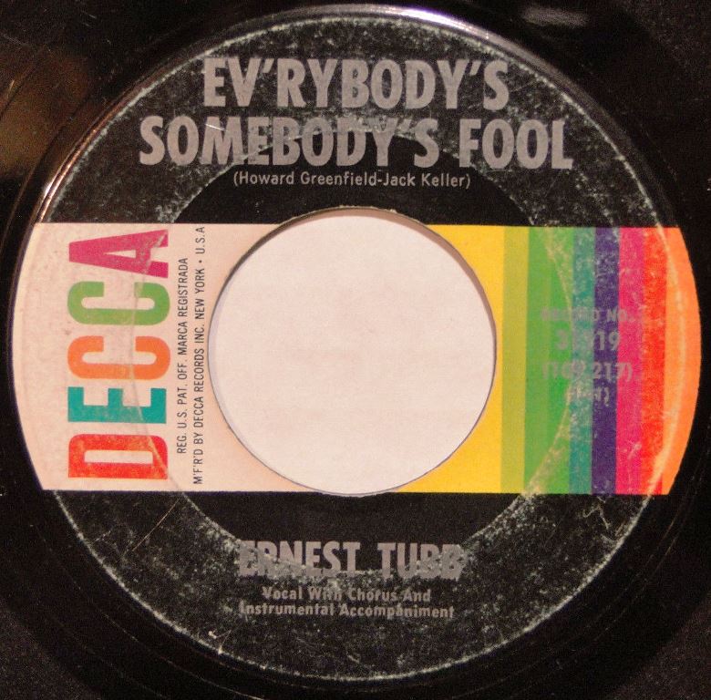 06 60....31119....ERNEST TUBB Vocal With Chorus And Instrumental Accompaniment..Ev'rybody's Somebody's Fool (109,217)/ERNEST TUBB Vocal With Instrumental Accompaniment..Let The Little Girl Dance (109,218)