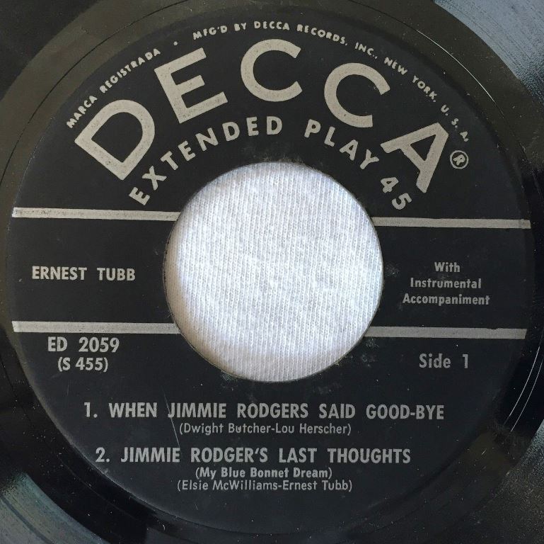 05 53....9-28696....ERNEST TUBB..When Jimmie Rodgers Said Good-Bye (45-84016)/Jimmie Rodgers' Last Thoughts (My Blue Bonnet Dream) (45-84017)