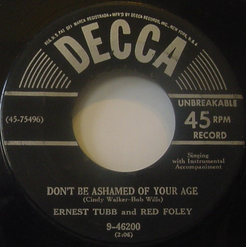 12 49 50....9-46200....ERNEST TUBB and RED FOLEY..Don't Be Ashamed Of Your Age (45-75496)/Tennessee Border No. 2 (45-75497)