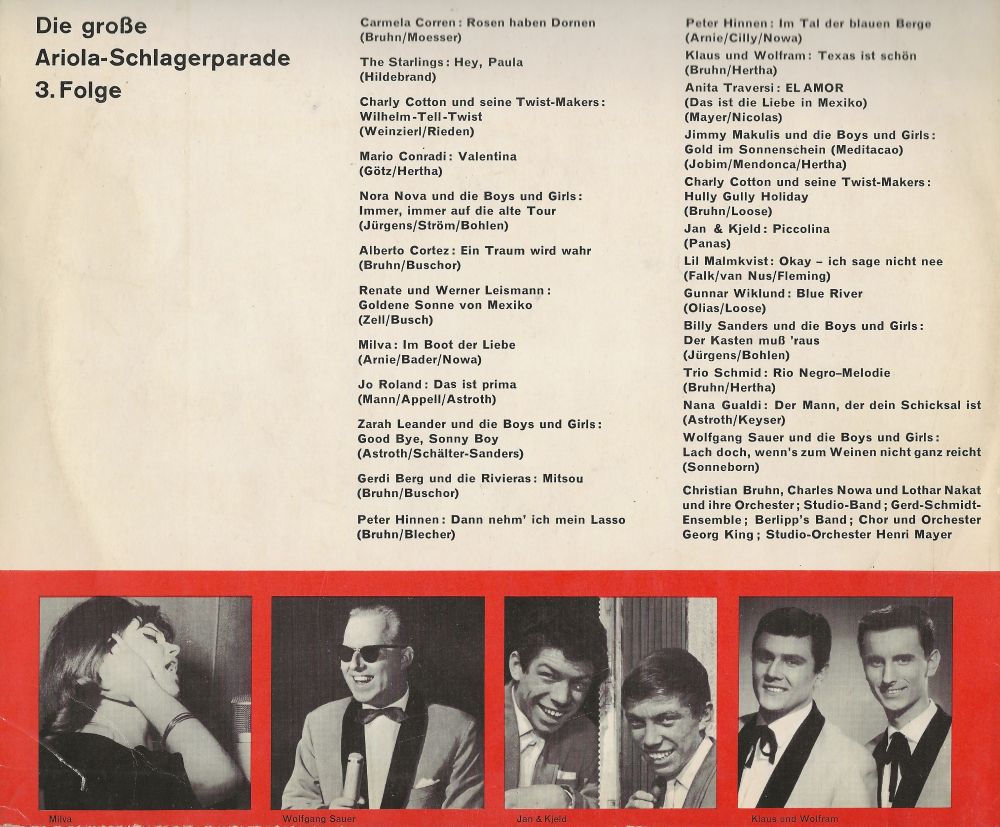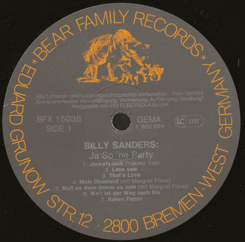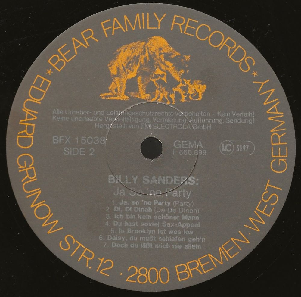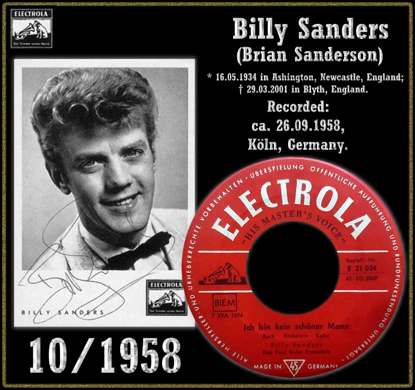 Ich bin ein großer Fan von Billy Sanders und ich habe ihn in meiner Jugend 1961 mit den Bambis im Tabarin auch noch persönlich erlebt. Eine der besten Life-Performances die ich je gesehen habe. Aber damals war es eben so, dass man mit Qualität nicht sehr gut verdienen konnte. Der herrliche Gus Backus wurde zum "Sauerkraut" und Billy Sanders meisterte sein Schicksal mit Gartenzwergen und das war auch seine einzige Top 20. Aber was soll's, wir haben ja seit 7. Jänner Fasching und da drücken wir ein Auge zu.