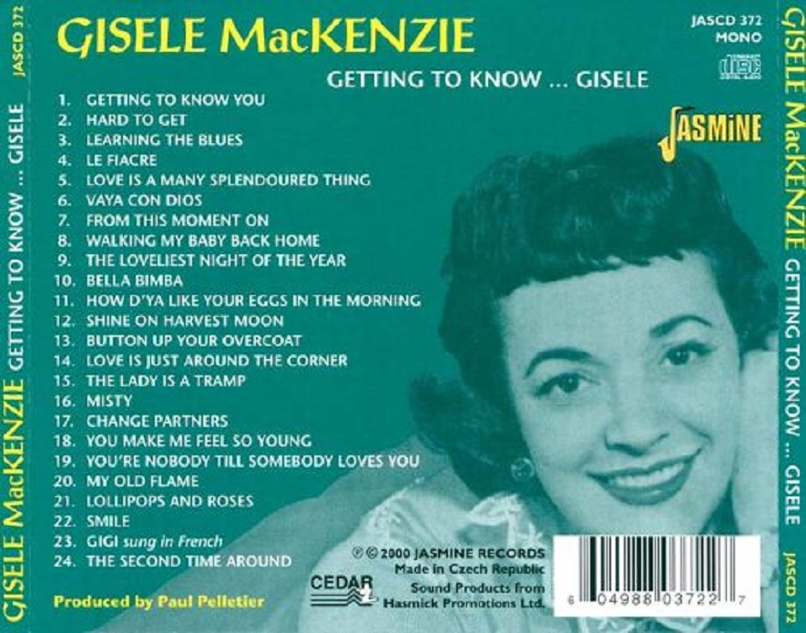 GisĂšle MacKenzie (10. Januar 1927 - 5. September 2003) war eine kanadische SĂ€ngerin, die vor allem fĂŒr ihre Auftritte in der beliebten Fernsehsendung Your Hit Parade bekannt war.
