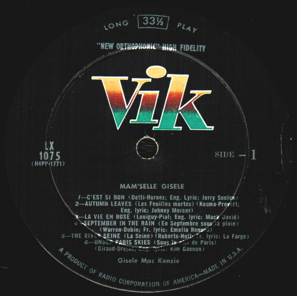 Frau MacKenzie schwankte zwischen einer Karriere als SĂ€ngerin oder einer als Konzertgeigerin, bis ihre Geige im Wert von 3.000 Dollar aus einem geparkten Auto gestohlen wurde. Ihre Berufung war somit entschieden, und sie begann 1946 in einer kanadischen Radiosendung mit dem Titel âMeet Giseleâ zu singen, bevor sie 1951 nach Los Angeles, Kalifornien, zog. Ihre PopularitĂ€t brachte ihr den informellen Titel Kanadas First Lady of Song ein.
