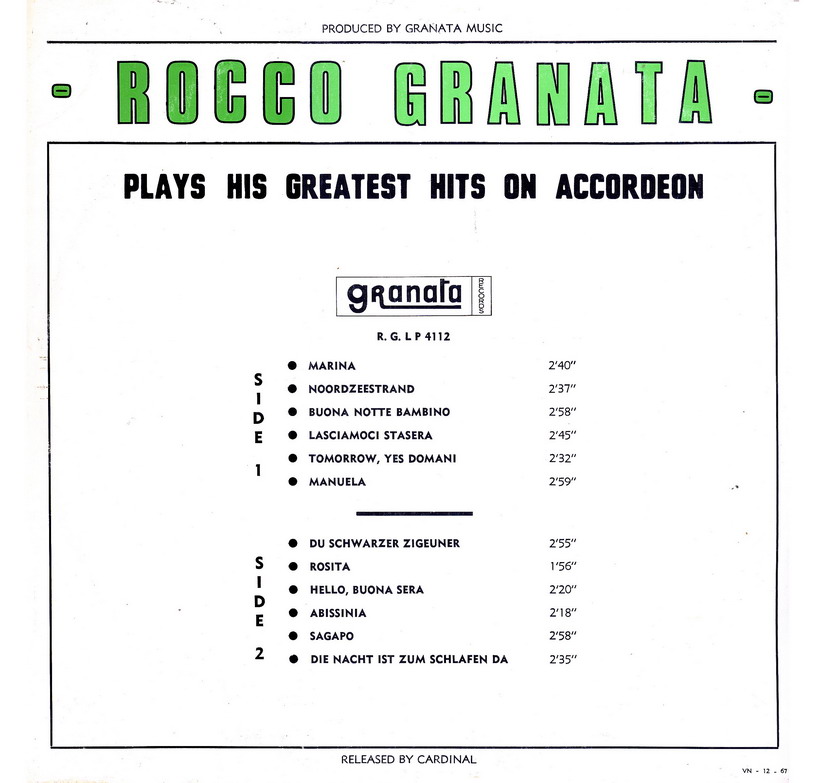1968 heiratete Rocco ein flämisches Mädchen, Rosie und ließ sich in Antwerpen, Belgien nieder. Sie bekamen zwei Kinder, Sam und Jessica und haben jetzt schon fünf Enkelkinder. In Antwerpen gründete er auch seinen Schallplattenvertrieb, Cardinal Records und den Musikverlag Granata Music Editions.