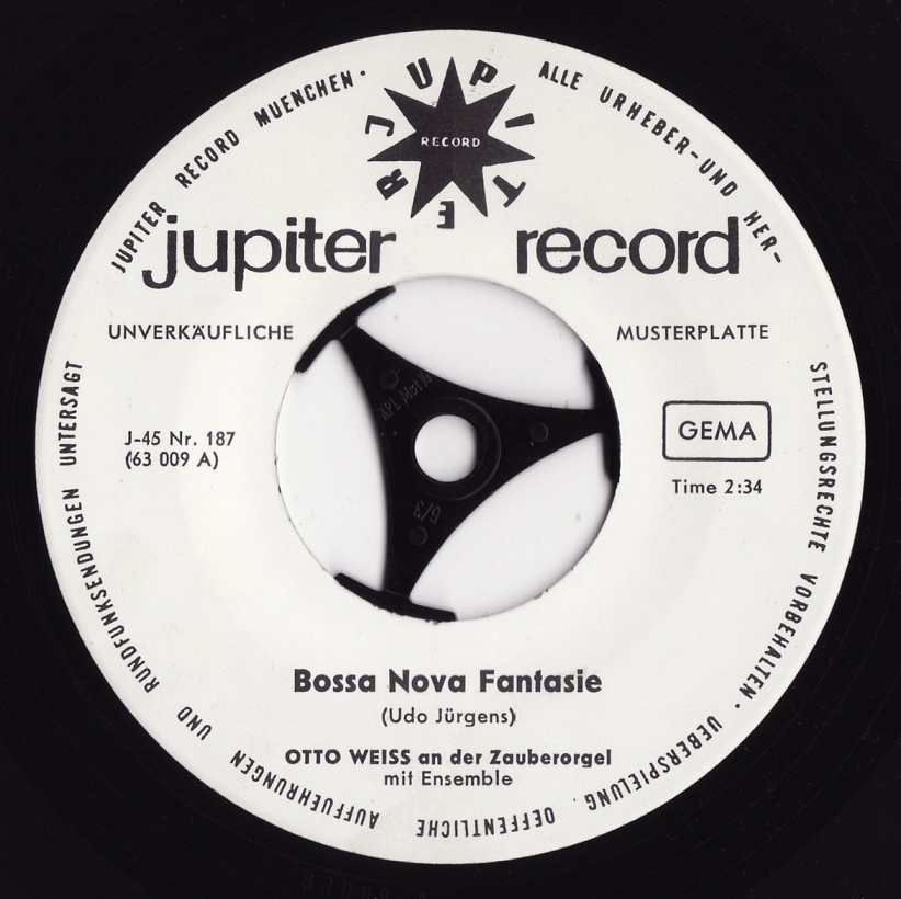 Otto Weiss an der "Zauberorgel": "Morgenrot / Bossa Nova Fantasie" (Jupiter Record J-45 Nr. 187) 1963 |