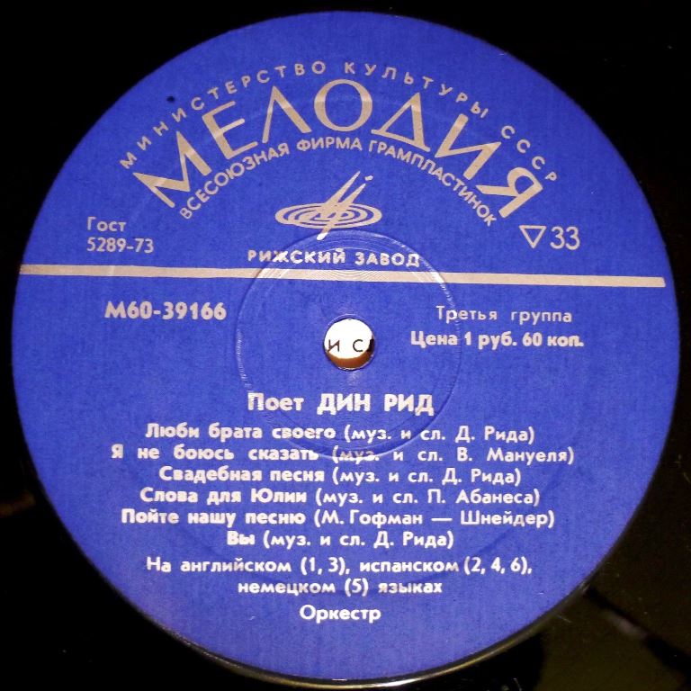 Dean Reed, Melodija, Lp, URSS, 1967