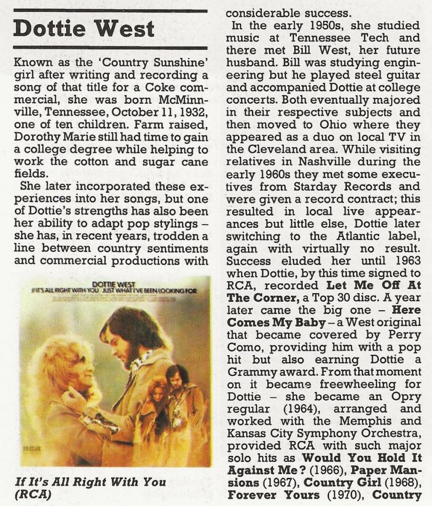unter Mitarbeit von Ray Stevens & Chet Atkins Anhänge an diesem Beitrag Dateiname: West, Dottie (3).jpg Dateigröße: 109.02 KB Titel: Heruntergeladen: 177 Dateiname: West, Dottie (4).jpg Dateigröße: 116.74 KB Titel: Heruntergeladen: 182
