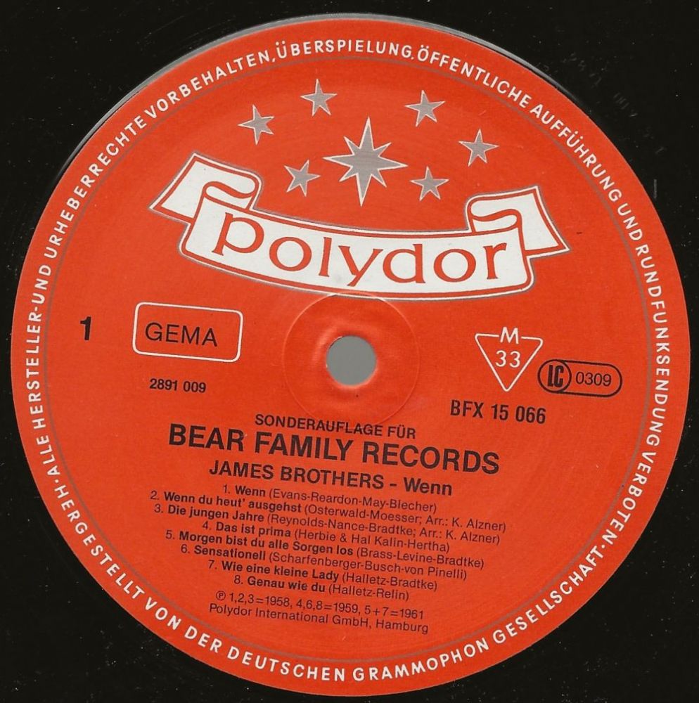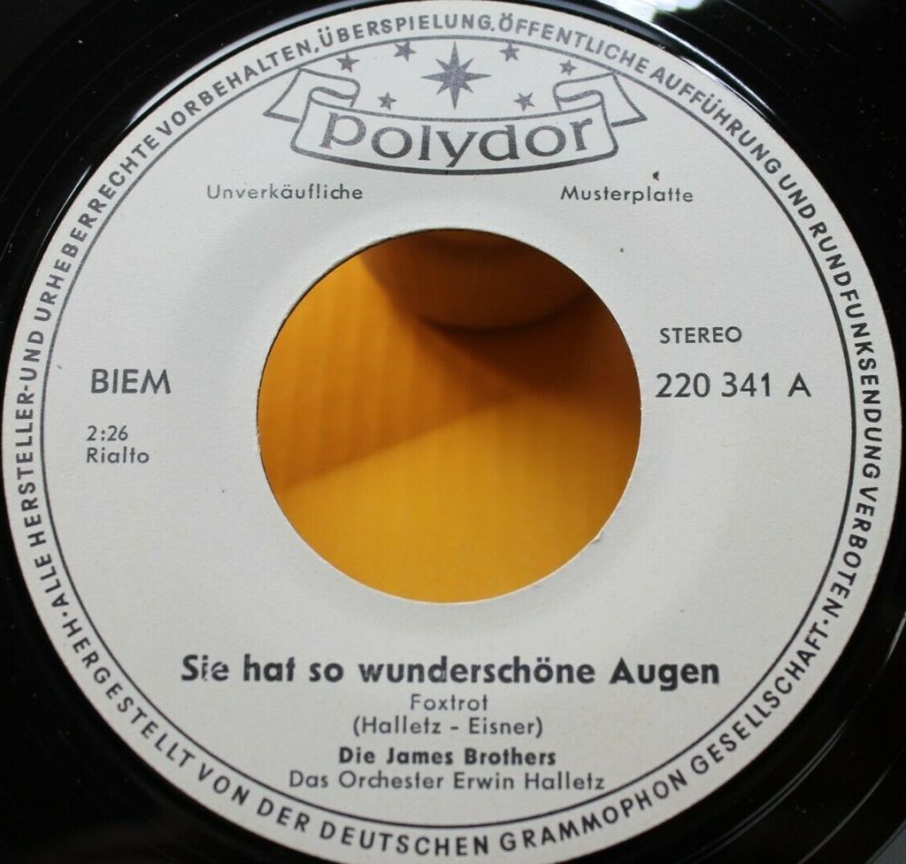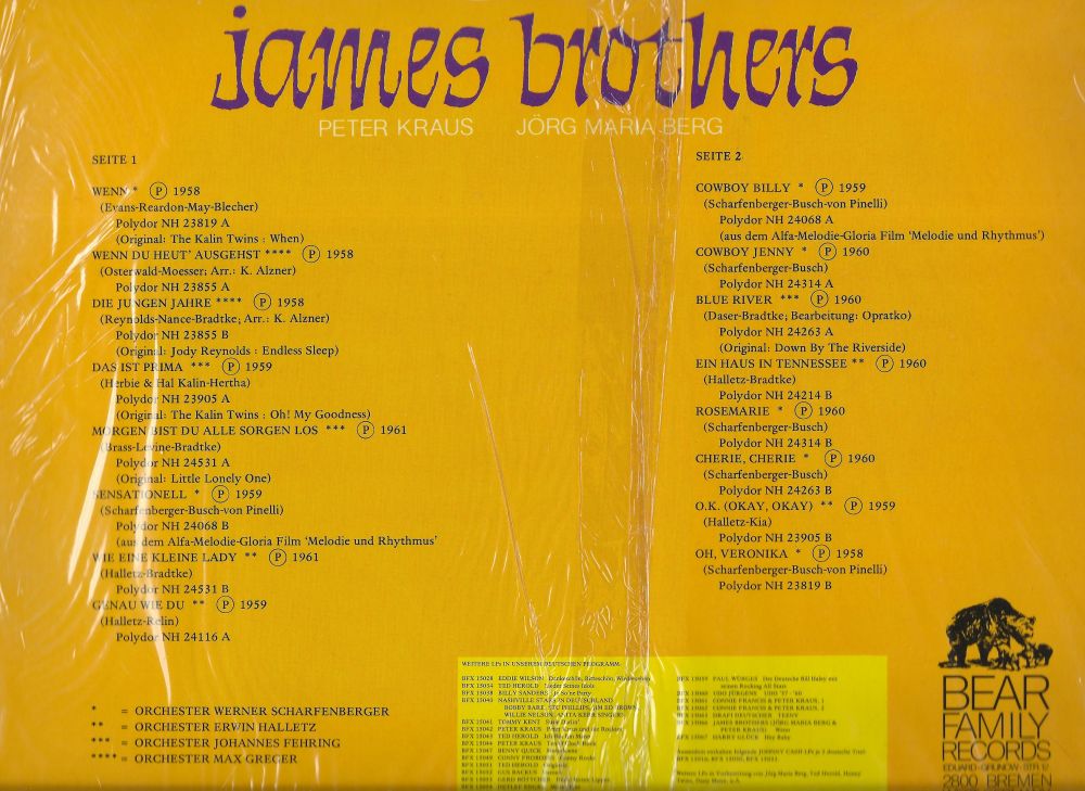 Diese Single wurde nicht von den James Brothers eingespielt. Hier handelt es sich um ein Duett von Peter Kraus und Gina Dobra, für das die POLYDOR ihren geschützten Namen "Die James Brothers" noch einmal verwendet hat. Auf der gezeigten CD befinden sich daher alle Kraus-Duette mit Jörg Maria Berg als James Brothers.