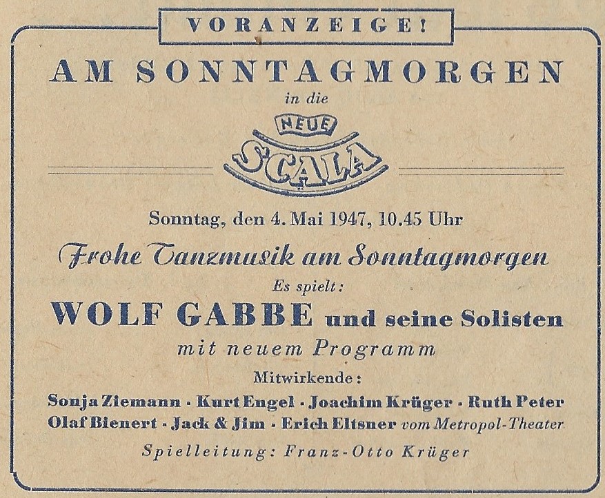 Wolf Gabbe mit Sonja Ziemann, Kurt Engel, Olaf Bienert und Jack & Jim (?)