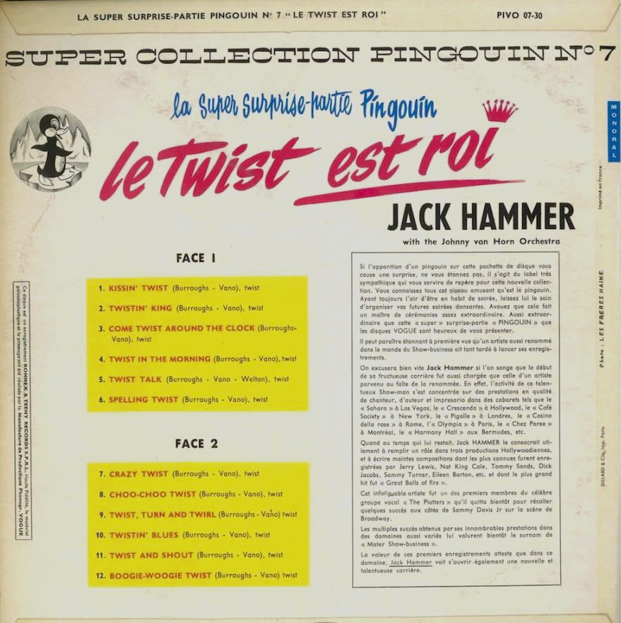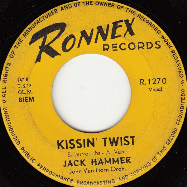 12 62....KN 166 A....JACK HAMMER..Kissing Twist - Boogie Woogie Twist/ B….Twistin' Blues (B: RONNEX LP 001)