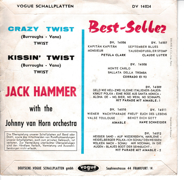 11 62....DV. 14024....Jack Hammer with the Johnny Van Horn Orchestra..Crazy Twist/Kissin' Twist (B: RONNEX 1273/1270 in deutscher Sprache) **)