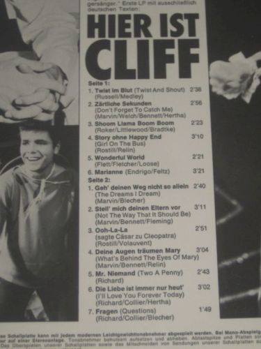 Alle deutsch gesungene Songs gibt es bei BF CD-Box Cliff Richard - On the Continent" Anhänge an diesem Beitrag Dateiname: Z Cliff Richard On t … nent.jpg Dateigröße: 50.33 KB Titel: Z Cliff Richard On the Continent.jpg Heruntergeladen: 299