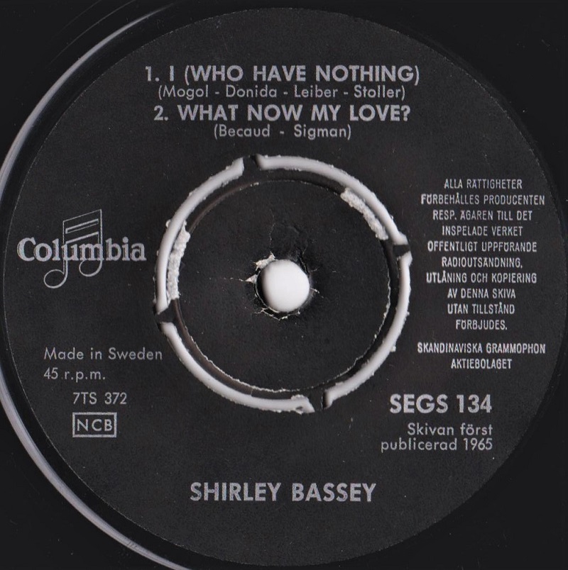 06 80….POP 2009…. SHIRLEY BASSEY..I (Who Have Nothing) (Uno Dei Tanti)/Goldfinger