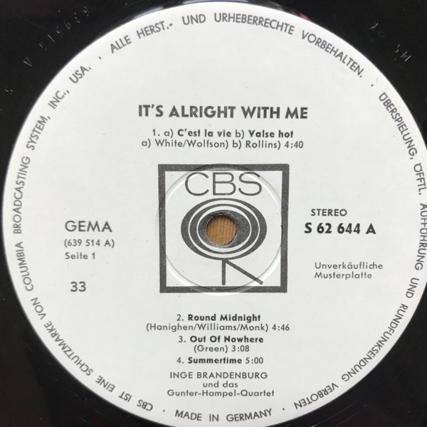 Promo "Its allright for me" (aktuell auf Discogs für 1000,-€ im Angebot)