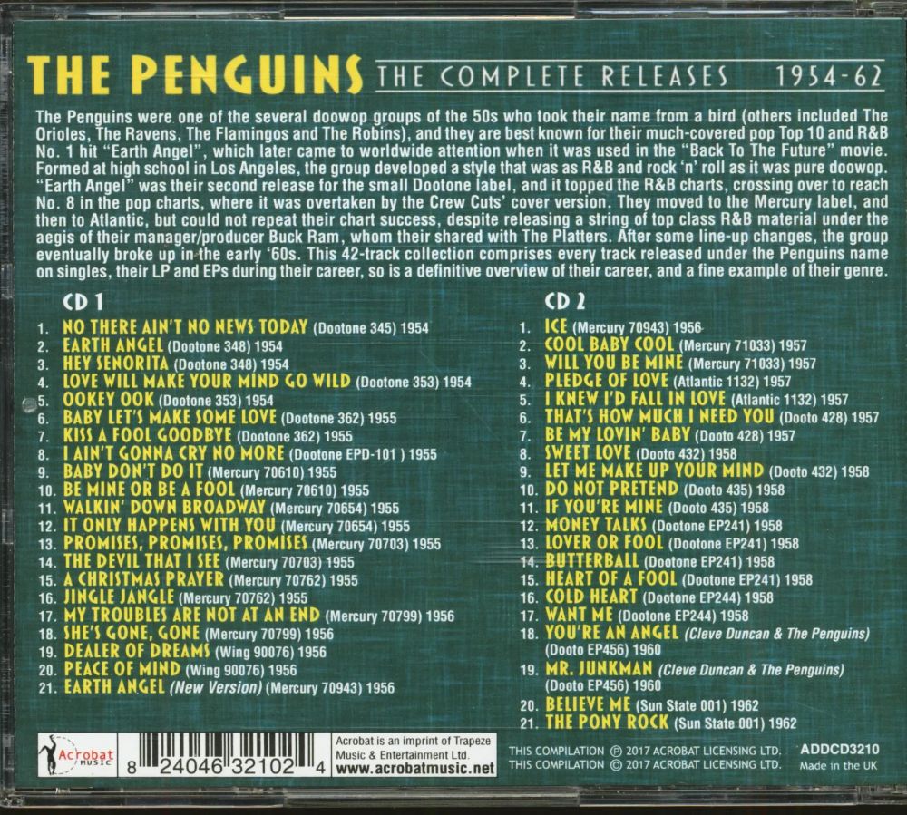 10 54....348-A—45....THE PENGUINS..Hey Senorita/-B—45....Earth Angel (Will You Be Mine) 12 54....45—353-a....THE PENGUINS..Love Will Make Your Mind Go Wild/-b....Ookey Ook
