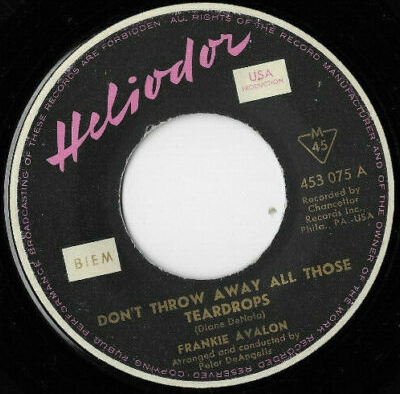 02 60....C1048....FRANKIE AVALON Arranged and Conducted by PETER DE ANGELIS..Don't Throw Away All Those Teardrops (45-1048 A)/FRANKIE AVALON Arranged by JOE SCOUSA..Talk, Talk, Talk (45-1048 B)