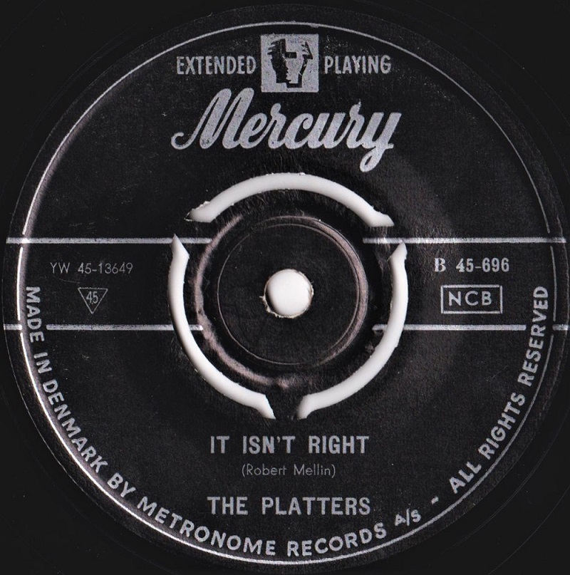 08 56....70948X45....THE PLATTERS..It Isn't Right (YW13649)/ You'll Never Never Know (YW13638)