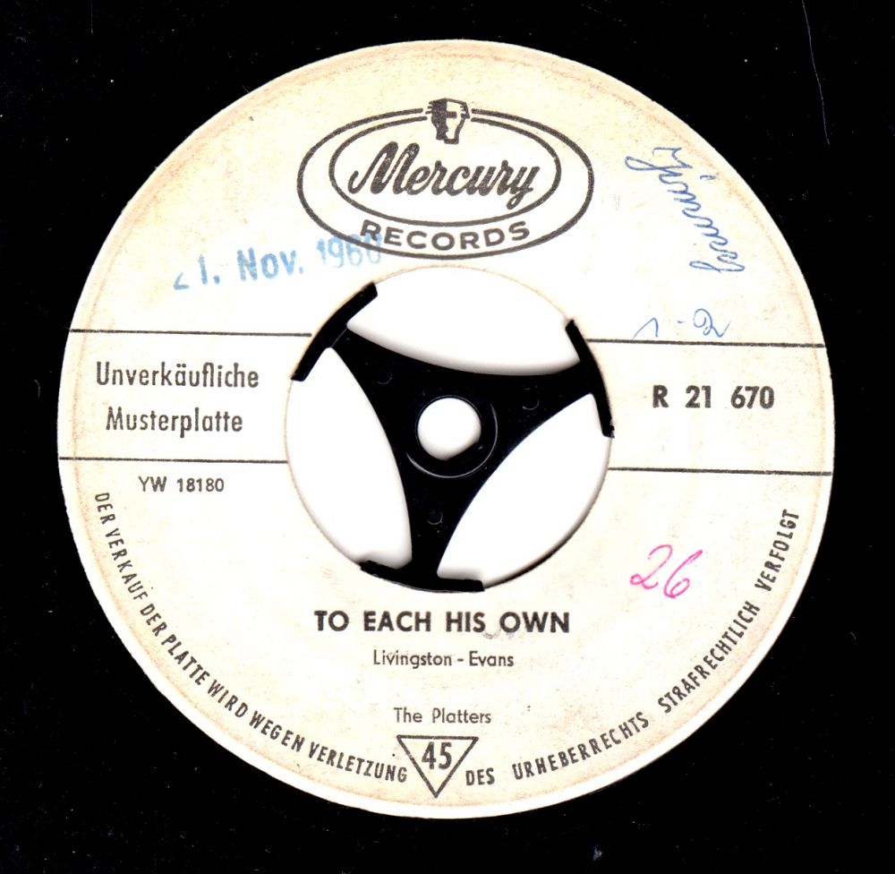 10 60....SS-10042X45....THE PLATTERS..To Each His Own/Down The River Of Golden Dreams