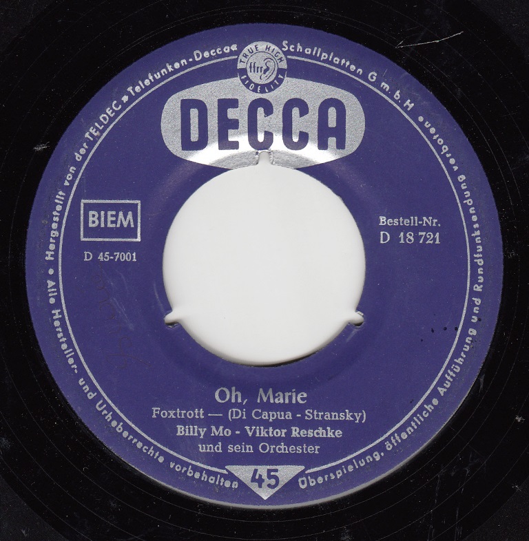 Billy Mo war der erste Sänger den ich Mitte 1966 persönlich kennenlernte. Beim damaligen Besuch seiner Plattenfirma kam er auch in unser Zimmer und begrüßte zuerst die Frauen ("Ladies first") und dann mich per Handschlag.