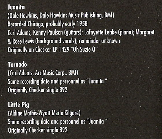 Die Einspielung von "Little Pig" an zwei unterschiedlichen Stellen ist korrekt, nur für die Single wurden beide Titel aus Chicago verwendet, wo übrigens Mark Mathis das Klavier bediente. Die Alternativ-Aufnahme von "Little Pig" aus Shreveport wurde erst 1973 bei einer britischen LP verwertet.