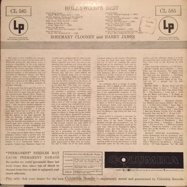 11 52....4-39905....HARRY JAMES-ROSEMARY CLOONEY with Harry James’ Orch. ..The Continental (You Kiss While You’re Dancing) (RZSP 10171)/ROSEMARY CLOONEY-HARRY JAMES with Harry James’ Orch. ..You'll Never Know (RZSP 10167)