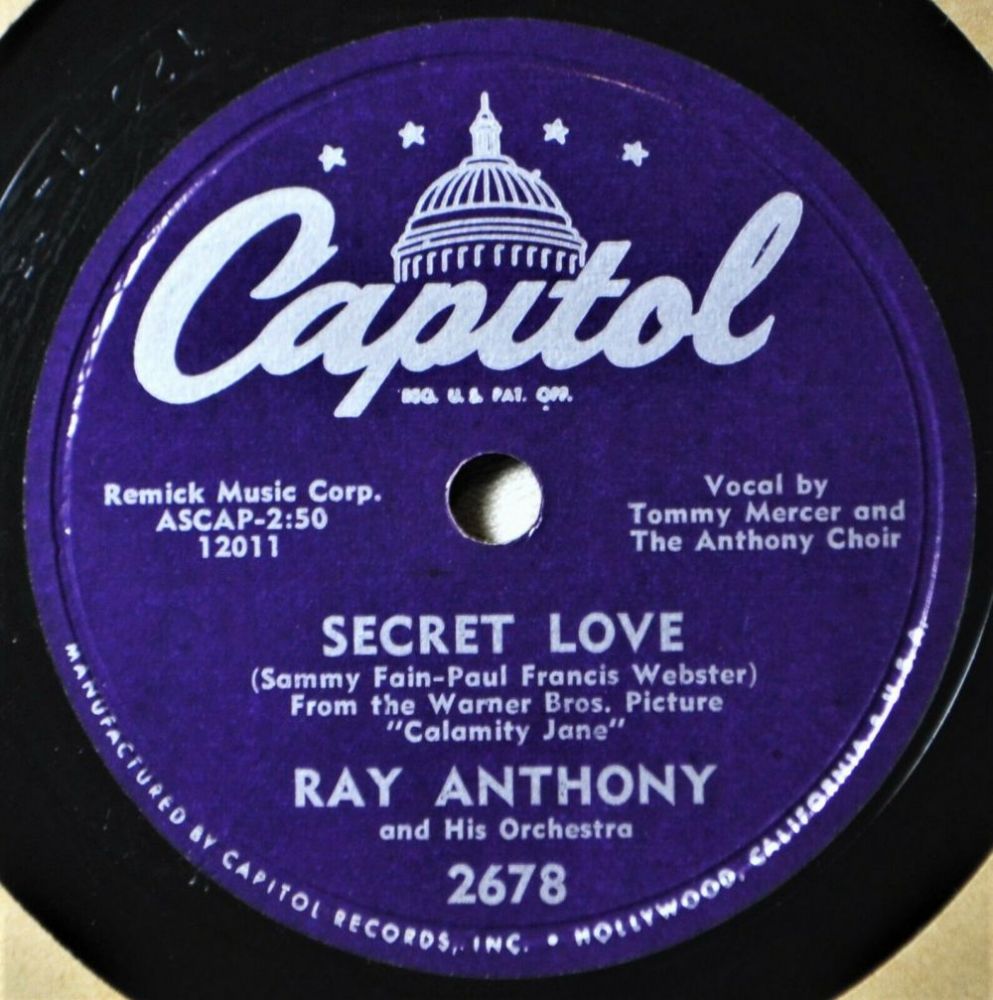 12 53....F2678....RAY ANTHONY and His Orchestra - Vocal by Tommy Mercer and The Anthony Choir..Secret Love (45-12011)/RAY ANTHONY and His Orchestra - Vocal by The Anthony Choir..O Mein Papa (Oh ! My Papa) (45-12003)