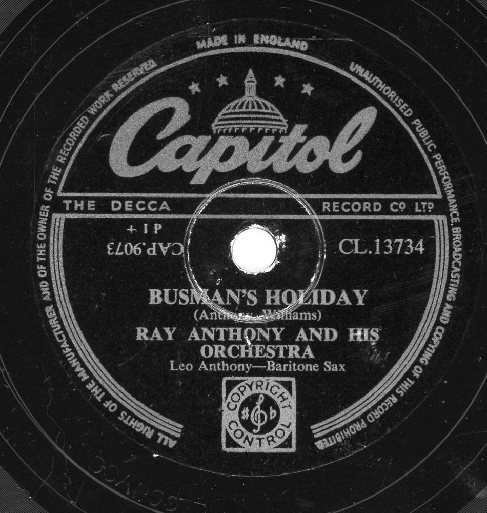 12 51....F1884....RAY ANTHONY and His Orchestra - Baritone Sax by Leo Anthony..Busman's Holiday (45 9073)/RAY ANTHONY and His Orchestra..The Honeydripper (45 9058)