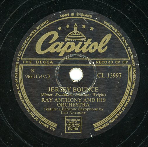 07 53....F2532....RAY ANTHONY and His Orchestra Featuring Baritone Saxophone by Leo Anthony..Jersey Bounce (45-11596)/RAY ANTHONY and His Orchestra..I Guess It Was You All The Time (45-11597)