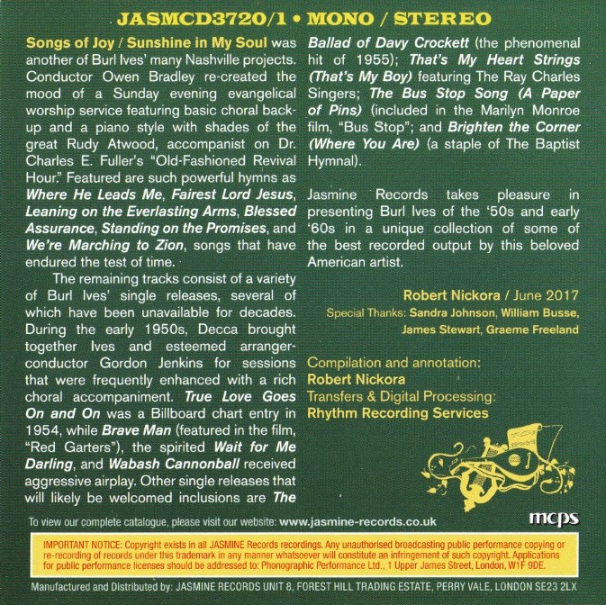 ?? 59....9-88250 1-350..BURL IVES With The Ray Charles Singers..Polly Wolly Doodle (106,470)/BURL IVES With Ken Darby And The King’s Men..The Man On The Flying Trapeze (L 10,325)