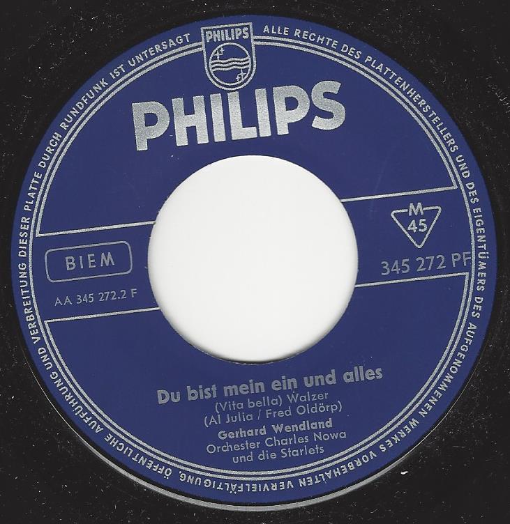 02 61....345 272 PF....Gerhard Wendland Orchester Charles Nowa und die Starlets..Ein anderer kam (New lovers)/Du bist mein ein und alles (Vita bella)