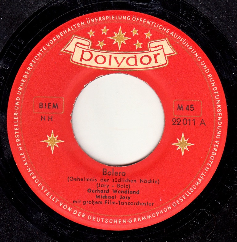 04 54....22 011 A....Gerhard Wendland Michael Jary mit großem Film-Tanzorchester..Bolero (Geheimnis der südlichen Nächte)/ B....Gerhard Wendland Michael Jary mit seiner Tanz-Spezialbesetzung..Lebewohl, du schwarze Rose