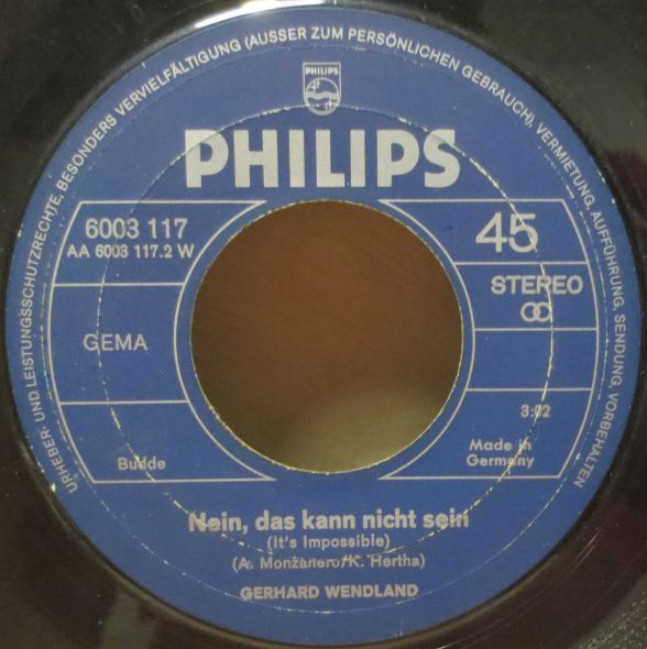 ?? 63....345 603 PF....Gerhard Wendland Chor und Orchester Heinz Alisch..Florentina (I Don't Need Her)/Ich hab so oft an dich gedacht