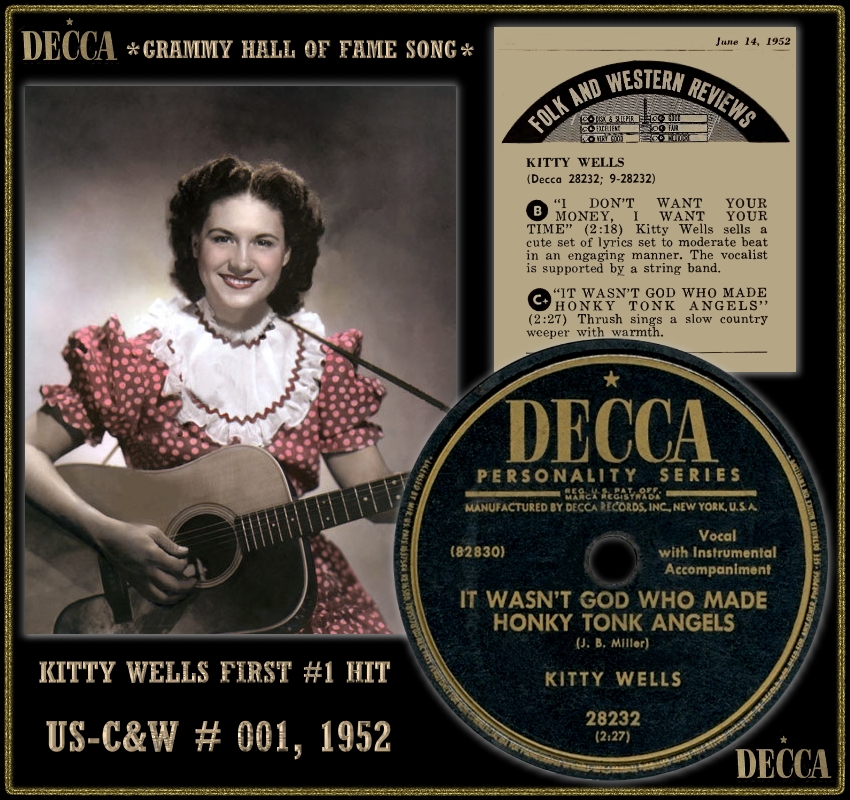 06 52....9-28232....KITTY WELLS..It Wasn't God Who Made Honky Tonk Angels (45-82830)/I Don't Want Your Money, I Want Your Time (45-82831)