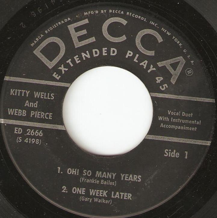 11 57....9-30489....WEBB PIERCE AND KITTY WELLS..One Week Later (45-100,614)/KITTY WELLS AND WEBB PIERCE..When I'm With You (45-100,615)