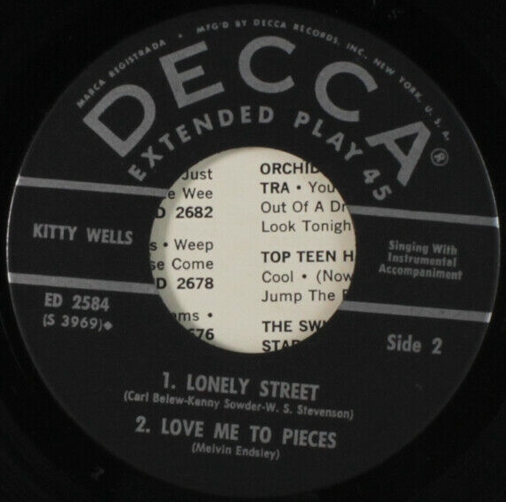 11 55....9-29728....KITTY WELLS..Lonely Side Of Town (45-86760)/I've Kissed You My Last Time (45-84864)