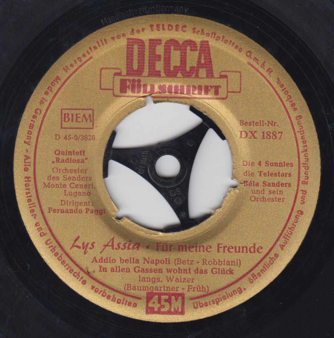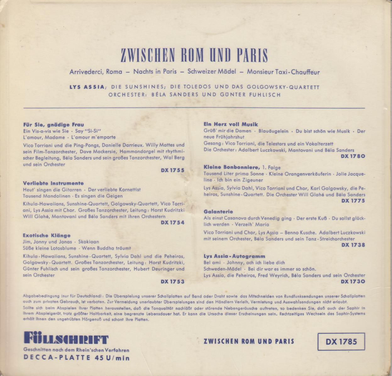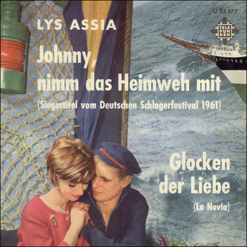 - zum einen die Mogelpackung mit dem Aufdruck "Siegertitel vom Deutschen Schlagerfestival 1961". Lys Assia hat gar nicht teilgenommen, und Johnny, nimm das Heimweh mit landete nur auf dem dritten Platz, vorgetragen von Caterina Valente...