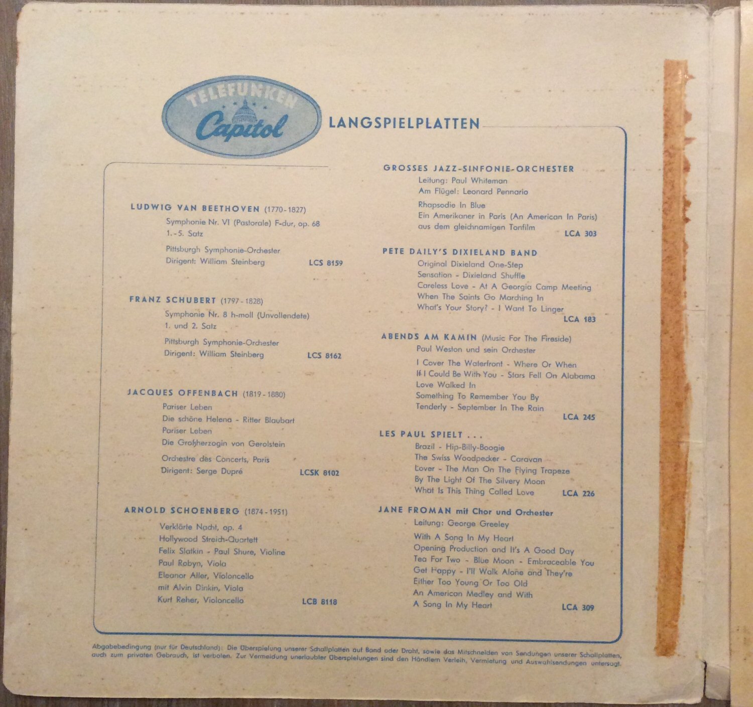 Vor dem Wechsel von CAPITOL zu ELECTROLA sahen die FLC dann so aus: